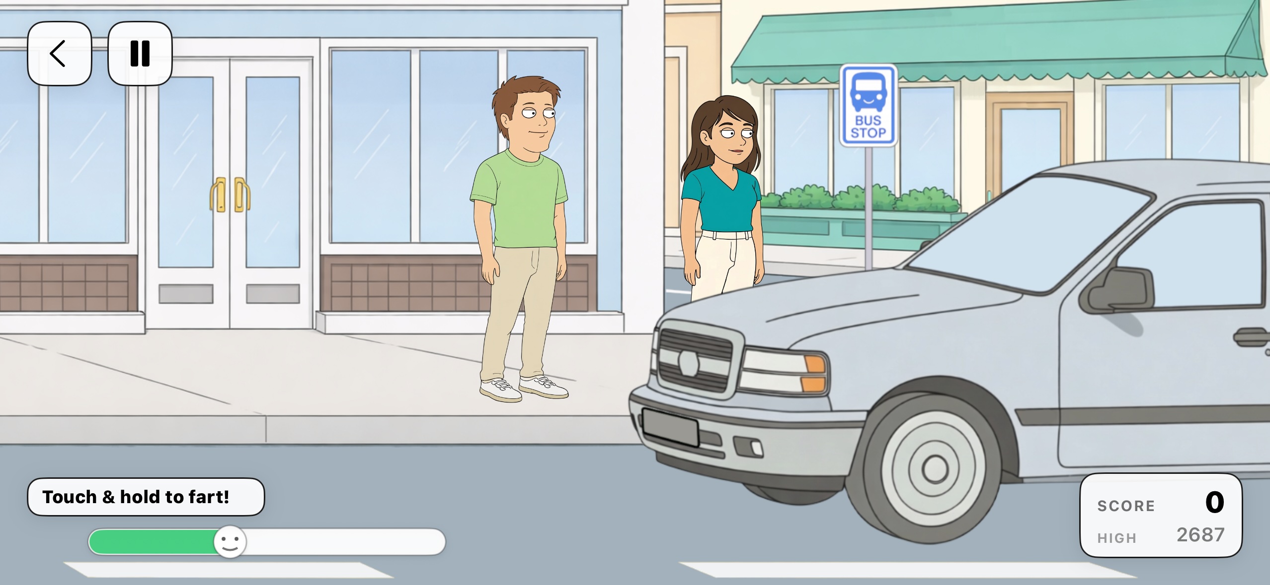 It’s up to you to avoid total embarrassment. Tap and hold at the right moment when a car roars by to cover your farts.